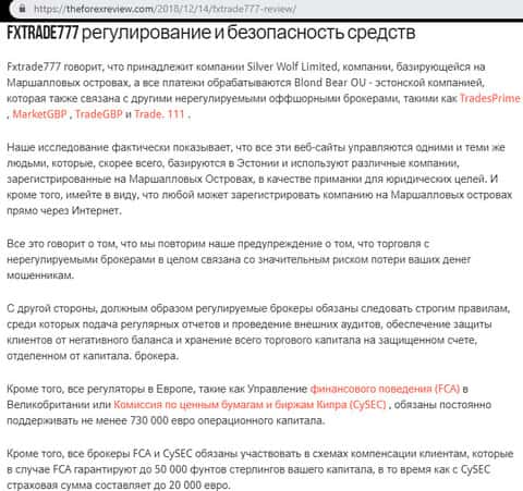 Краткая информация о конторе ФХ Трейд 777 на основе статьи forexbrokerz com