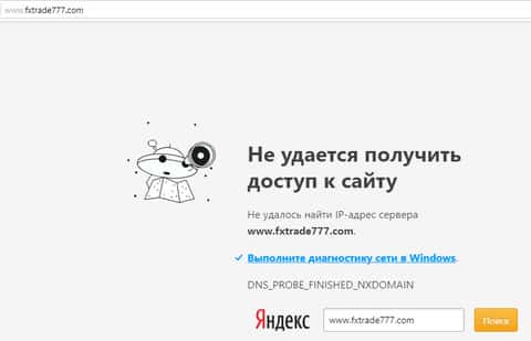- Сайт брокерской конторы ФХ Трейд 777 больше не работает