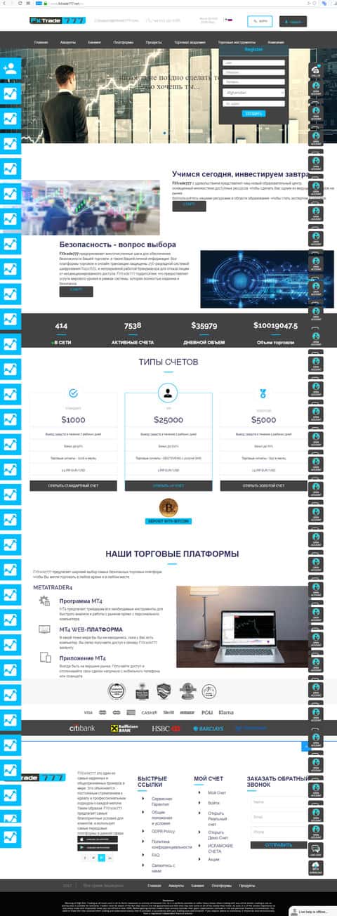 Из следующей части статьи стало известно, что жулье ФХ Трейд 777 использовало торговую платформу Мета Трейдер 4, которая известна всем форекс-мошенникам. Конечно же отсутствие демо-счетов, дополнительная плата за алгоритмическую торговлю и оффшорная прописка - это все негативные факторы, которые влияли на доверие к мошеннической конторе.