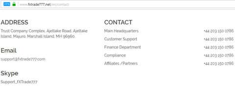 - адрес ФХ Трейд 777 - Trust Company Complex, Ajeltake Road, Ajeltake Island, Majuro, Marshall Island, MH 96960;