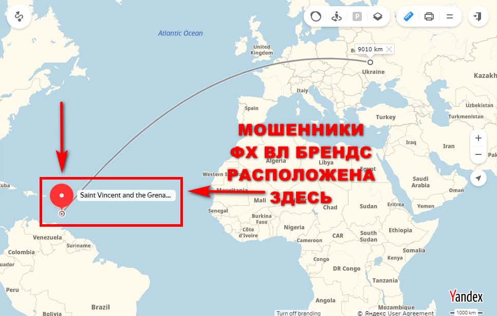 Далее представлена информация касательно месторасположения конторы ФХ ВЛ Брендс, которая находится в оффшорном государстве Сент Винсент и Гренадин. Жулье выбрало именно эту страну, чтобы не платить налоги и уйти от ответственности. Вот адрес: Suite 305, Griffith Corporate Centre, P.O.Box 1510, Beach Kingstown, St. Vincent and the Grenadines.