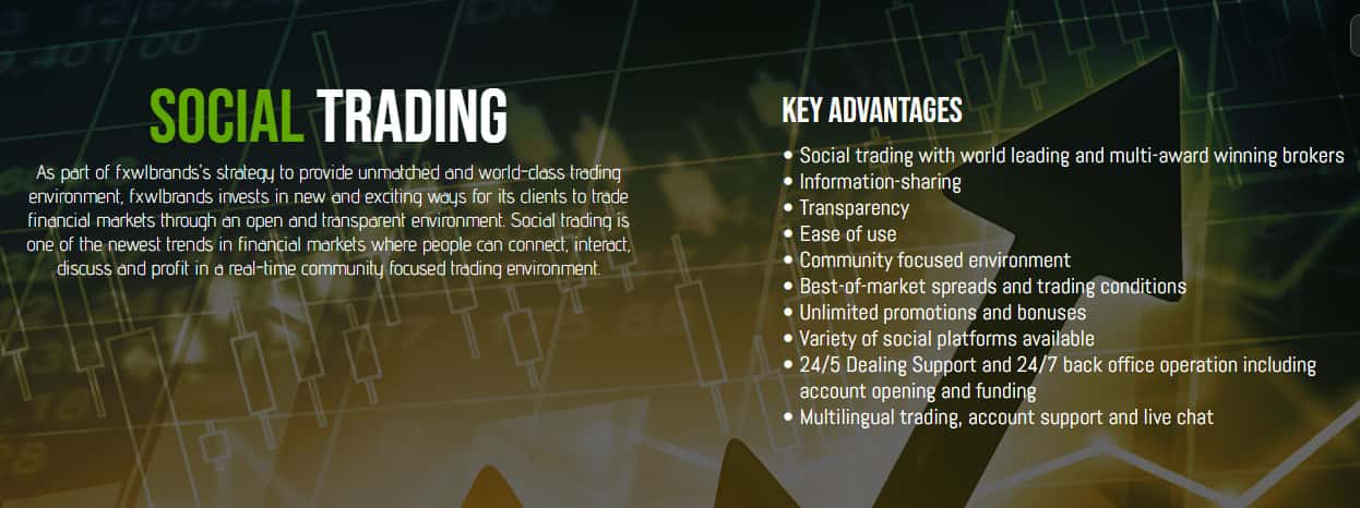 Далее представлена информация, что контора FXWLBrands предлагает своим клиентам использовать социальный трейдинг, при чем это больше похоже на ПАММ-счет, только сделки копирует сам трейдер. Так мошенники могут намного быстрее слить счет клиенту, при чем его же руками. Так что будьте острожными с такими услугами.