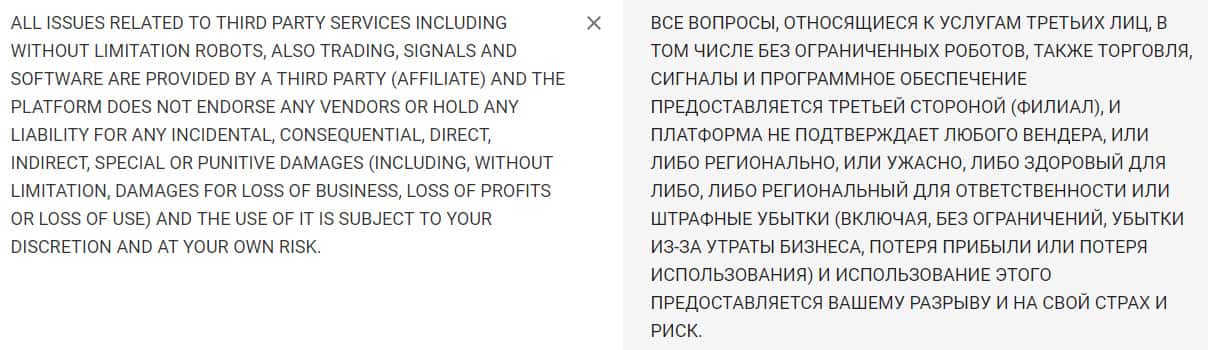 И для верочки, мошенники FXWLBrands и здесь указали, что они снимают с себя всю ответственность перед клиентами за то, что он потеряет все деньги. Все это также относится к аферистам напрямую, но в суде отвоевать право на компенсацию не получится. По закону скажут, что не нужно было подписывать договор.