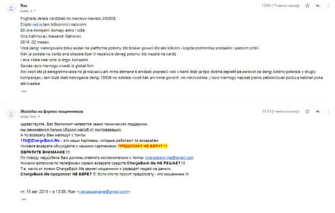 Шулера ФХГ Трейд обворовали клиента на не малую сумму денег. Аналитики очень жестко задурили ему голову и вытащили 1800 долларов. После этого несколько убыточных сделок порешали исход счета и слили под ноль. Чтобы решить вопрос с компенсацией и выводом украденных средств, он написал в сервис ChargeBack.Me письмо со всеми подробностями, как и кто этот лохотрон проводил.