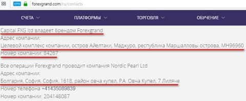 Ниже представлены данные с официального сайта компании ForexGrand на которых видно сходство адресов двух форекс-кухонь.
