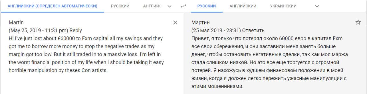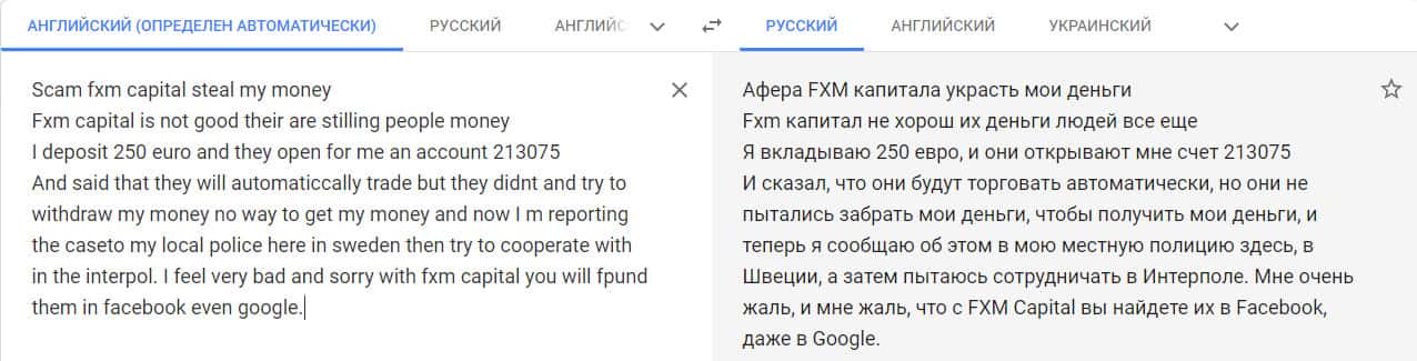 - Мошенники FXM Capital развели на деньги еще одного клиента