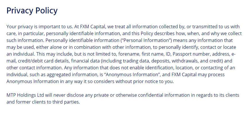 Политика конфендициальности мошенников ФХМ Капитал