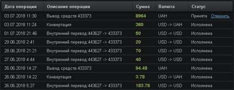 Даже после того, когда я прямо высказал сомнения в прозрачности акции компании. После этого, консультант просто отказался продолжать разговор и чуть позже мне заблокировали кабинет. Соответственно, я сделал вывод, что курс, формируемый компанией намеренно занижается, чтобы меньше фактически выплатить клиенту из прибыли. Если у вы не успеваете отслеживать актуальные курсы, объясните, почему компания не может привязаться к курсу банка, через который будет выводиться гривня? В этом случае достаточно указать слова "банковский курс а момент вывода" вместо конкретных цифр с курсами. Почему клиент рискует оказаться заложником вашего курсообразования компании, волатильные изменения которого вы не успеваете отследить?