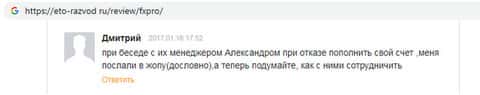 - Хамство – в стиле мошенников из FxPro Direct