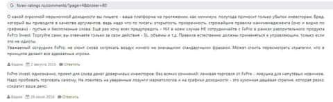 Этот вкладчик, депозит которого обнулили в самом начале его сотрудничества со скам-конторой ФхПро Директ, считает, что данный брокер – самый отвратительный из всех, с кем он имел дело. Это понятно, ведь его, опытного трейдера, просто облапошили, как полного лоха.