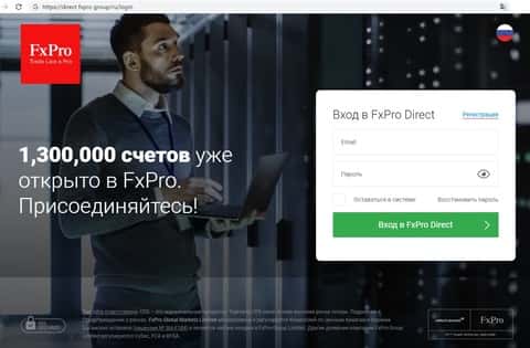 Многие факты, найденные на сайте FxPro Direct, подсказывают, что это лохотрон. По сути сам сайт представляет собой небольшой одностраничник без ссылок и информации. Кроме окошка для входа в систему и опции выбора языка тут больше ничего и нет.