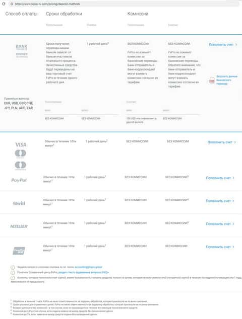 Поскольку аферистам FxPro Direct важно лишь пополнение депозита, то делать это они разрешают любым удобным лопуху-клиенту способом, включая ненадёжные электронные кошельки. Настораживает, что клиент может снять столько, сколько внес, в зависимости от процессинга. Полный бред.