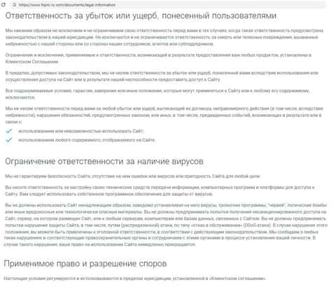 В ходе работы с системой ФхПро Директ предусмотрены и финансовые потери пользователя, и вирусные атаки на его компьютер или телефон. Ни за какие ущербы, причиненные клиенту, шарашкина контора нести ответ не будет. К тому же все условия регулируются иностранной юрисдикцией.