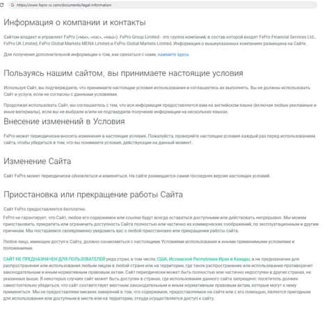 Договор заключается с конторой, владеющей ФхПро Директ. Мошенники отлично продумали пункты соглашения так, чтобы остаться ни при чем. Они могут останавливать сайт в любой момент, ограничивать доступ клиента к услугам также без объяснения причин.