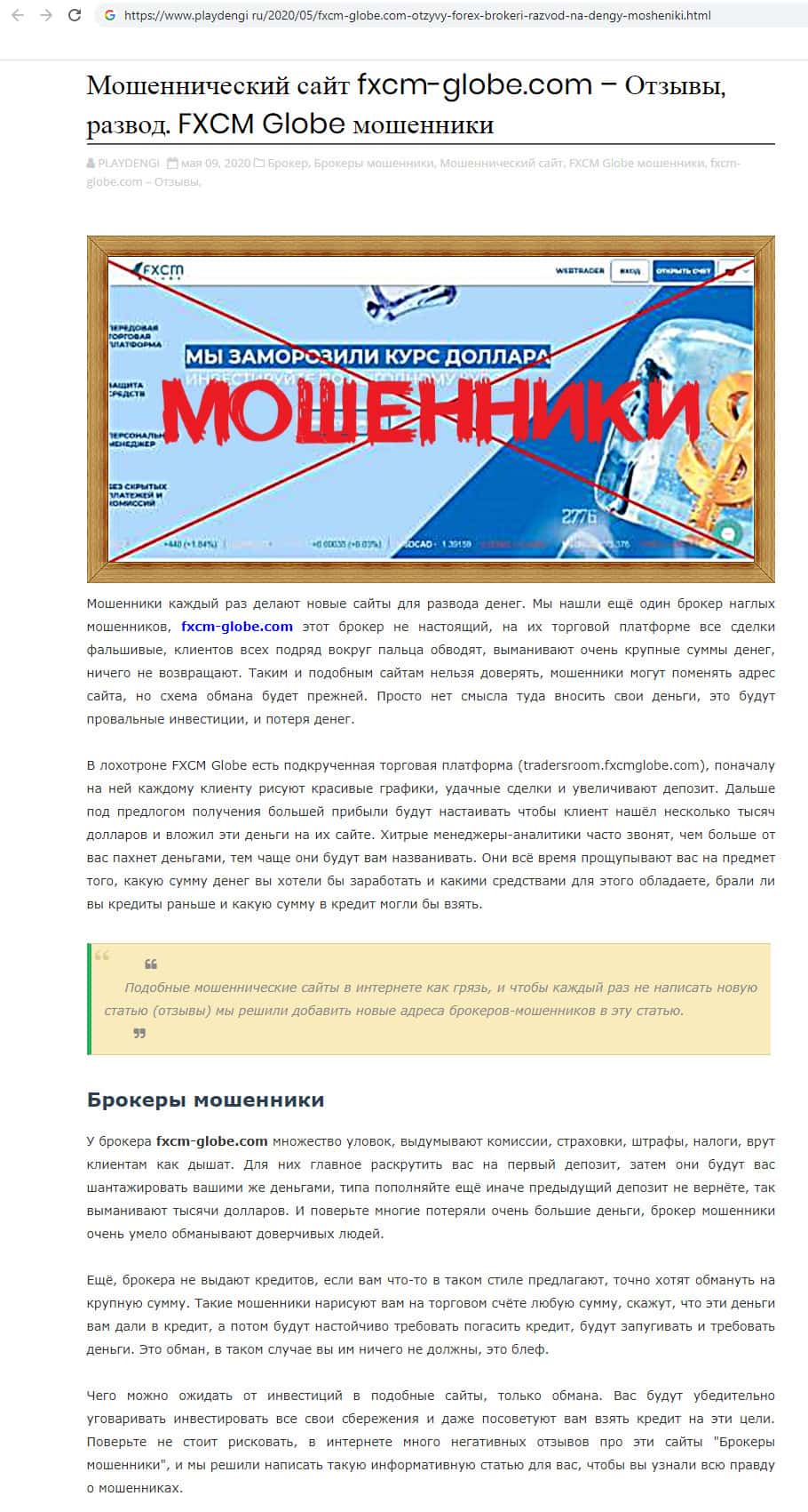 playdengi ru - сайт с разоблачительной статьёй о разводилах FXCMGlobe