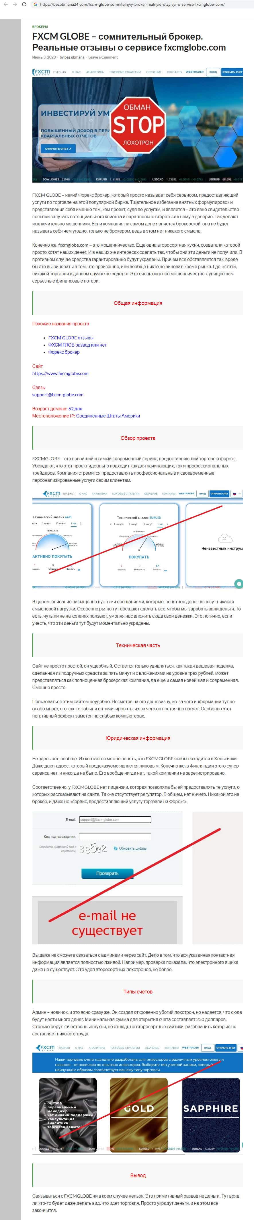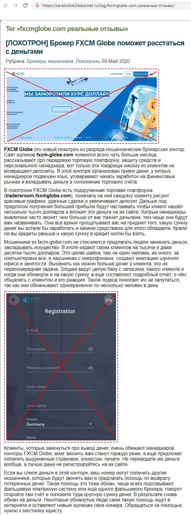 - Разоблачительная статья о кидалах FXCMGlobe на сайте bezobmana24 com