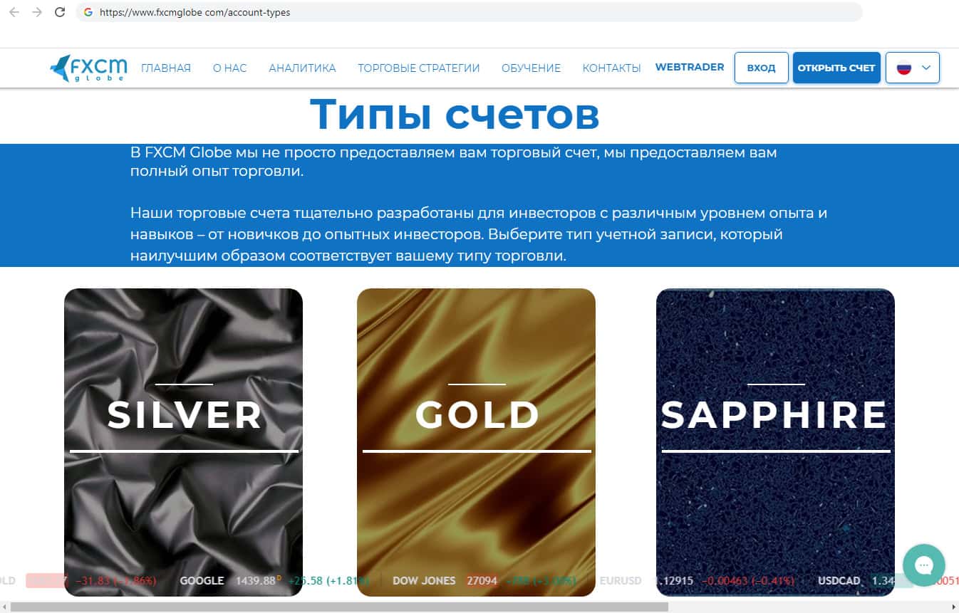 - Махинаторы ФХСМ Глобе предоставили три вида счёта для клиентов