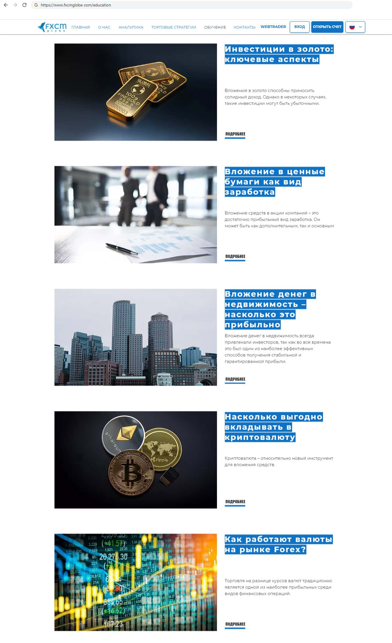 Недоконтора FXCMGlobe представила на своём сайте пункт "Обучение" в котором пользователям предоставлена общеобразовательная информация, которую они могут найти в интернете. Компания не предоставила никакой новой информации на сайте, так как всё их обучение находится в открытом доступе в сети интернет.