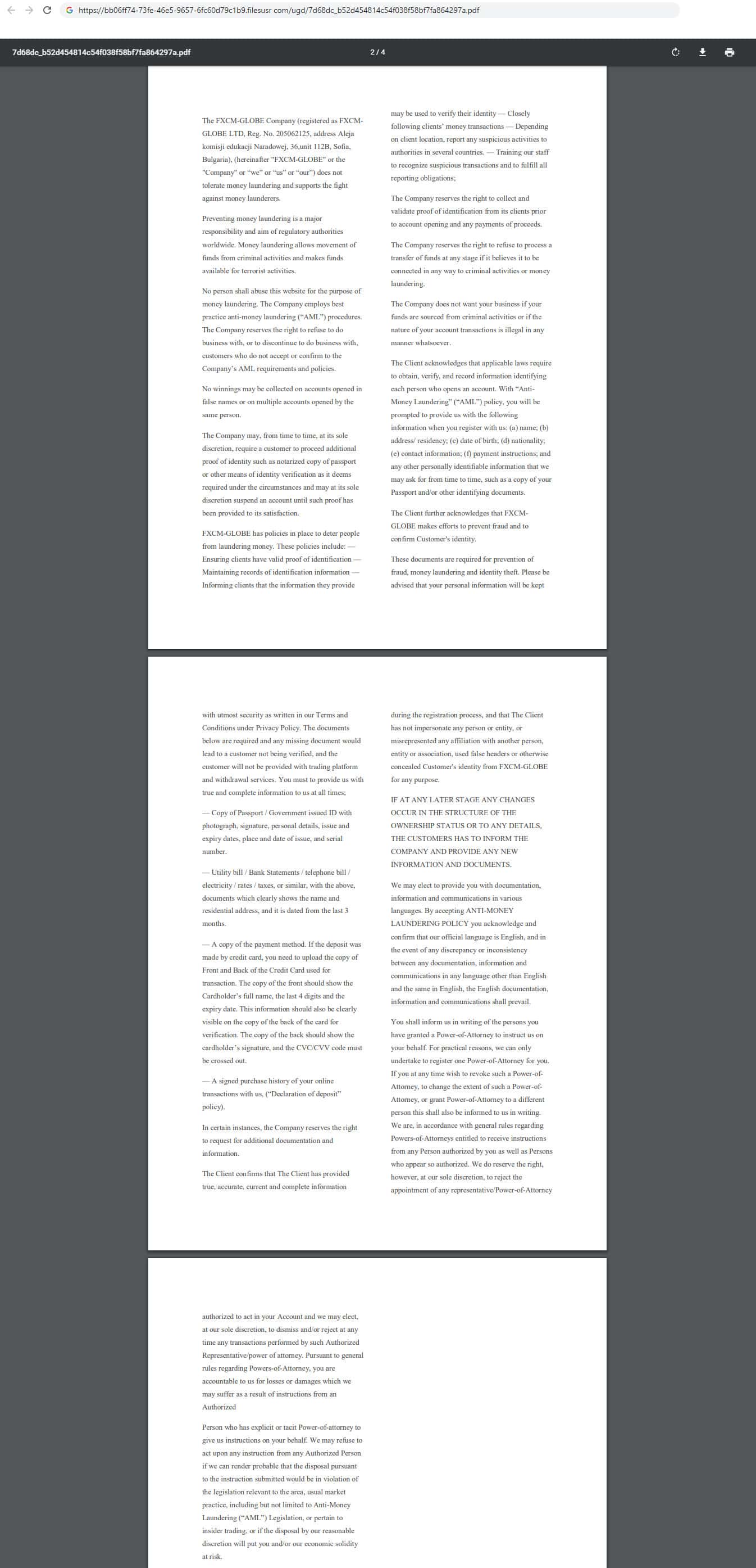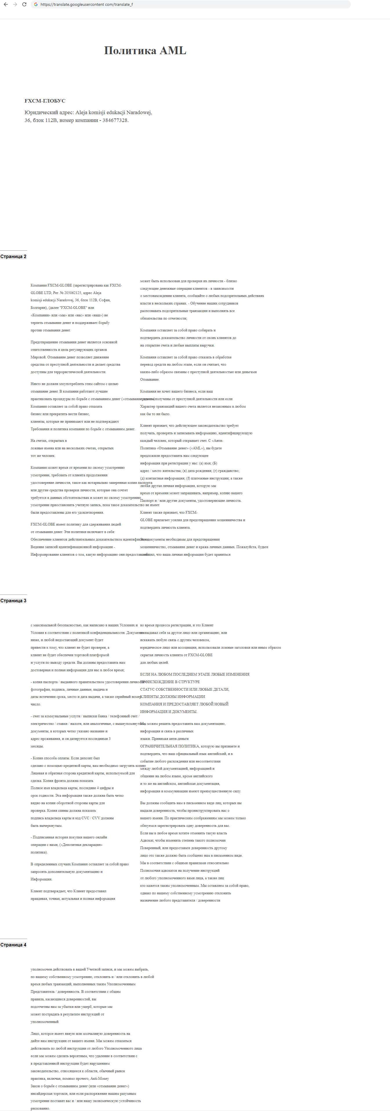 На сайте мошеннической организации ФХСМ Глобе есть документ под названием "Политика AML". В нём контора рассказывает, как борется с отмыванием денег, а так же запрещает это делать. Не понятно для чего этот документ, видимо для того, что бы пользователи глядя на него лишний раз подумали, что организация серьёзная.