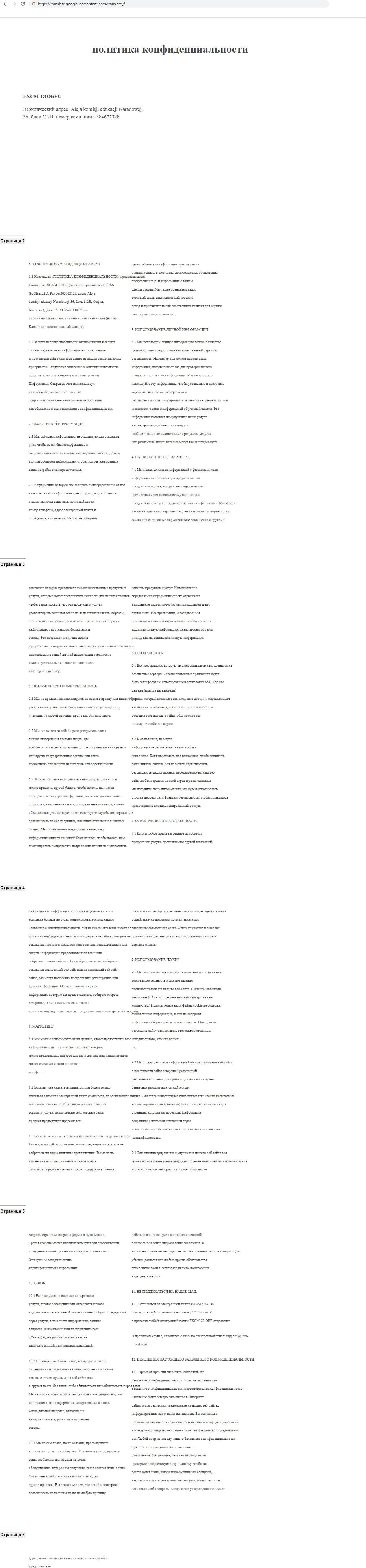 - Политика конфиденциальности мошеннической фирмы FXCMGlobe