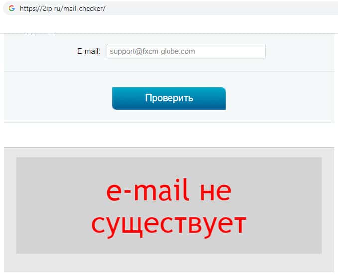Мы проверили существование адреса электронной почты мошенников FXCMGlobe. Оказалось, что жулики указали не верный адрес почты, так как данной почты просто не существует, и когда обманутые пользователи пишут жалобы, то они просто уходят в никуда. Компания просто водит за нос пользователей давая им липовые данные.