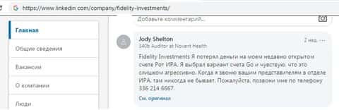 - Негативный комментарий о мошенниках Фиделити в Linkedin