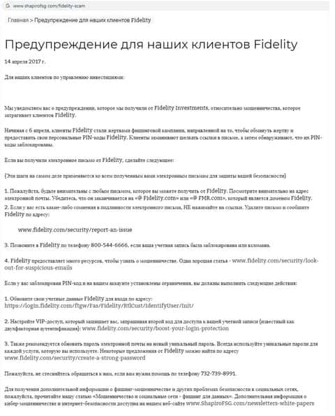 - Совет не связываться с финансовыми махинаторами Fidelity