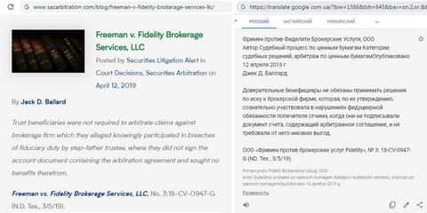 Одно из последних разбирательств против Фиделити можно найти в сети интернет. Недовольные бывшие клиенты лохотрона пытаются вернуть свои деньги, и даже подают в суд. Отличное доказательство того, что с данной организацией ни в коем случае нельзя сотрудничать.