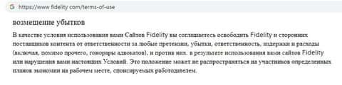 Учтите, что используя скам-портал Fidelity, и подписывая с мошенниками соглашение, вы автоматически отказываетесь от всяческих претензий, в том числе от финансовых потерь, убытков или ущерба. Также именно клиент понесет все издержки и расходы, например, в случае суда.