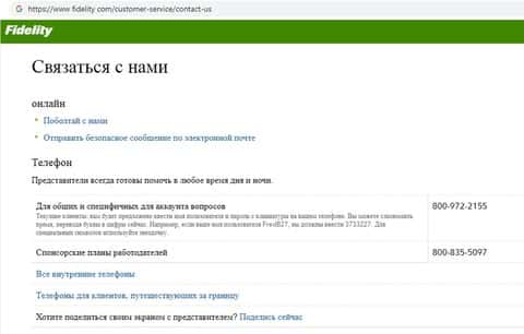 На своем сайте сотрудники Фиделити не балуют посетителей адресами или точной контактной информацией. При желании связаться со службой поддержки, нужно заполнить и отправить форму, указав свои контакты. На сайте есть лишь пара номеров, однако из других источников нашлись и другие данные мошенников: