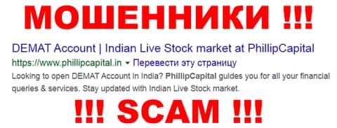 Филип Капитал - очередные мошенники сети интернет, которые занимаются наглым разводом наивных пользователей сети интернет под довольно стандартным и банальным предлогом торговли форекс, в ходе которой аферисты PhillipCapital нагло сливают счет наивной клиентуре. В связи с этим иметь дело и сотрудничать с жульем Филип Капитал определенно не рекомендуем !!!