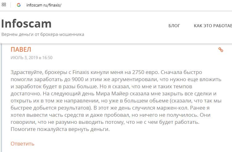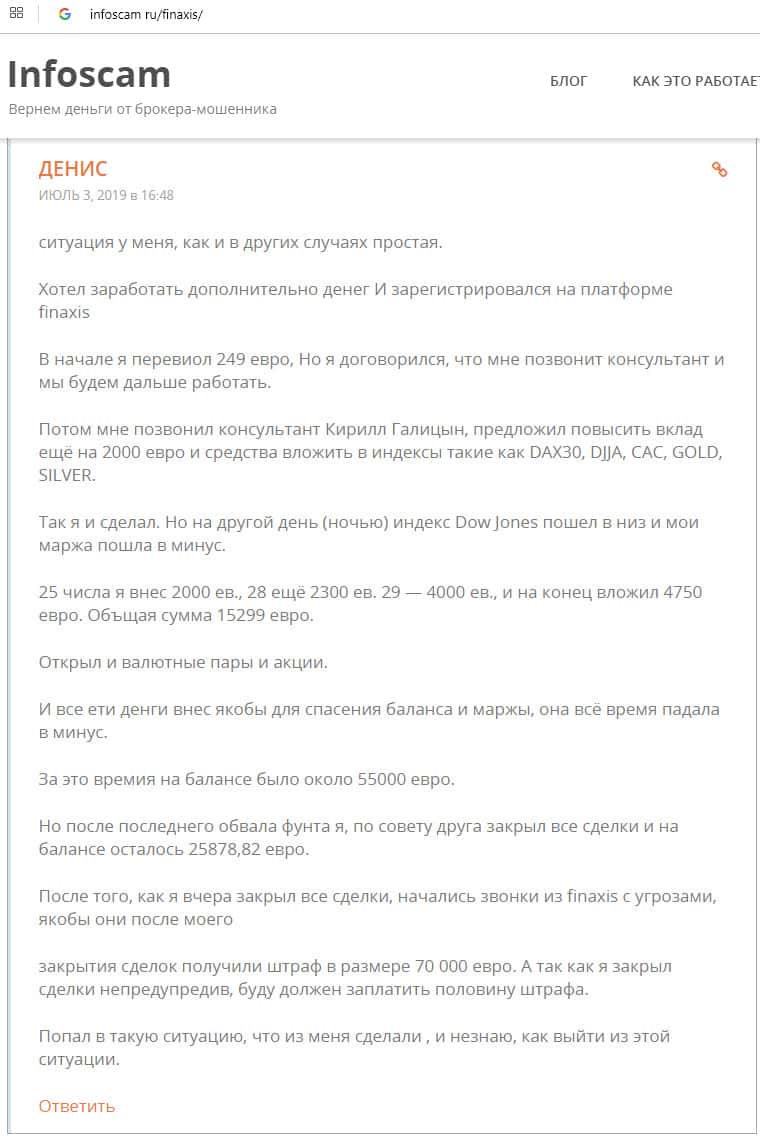 - Фальшивый брокер FinAxis кинул клиента на 2750 евро