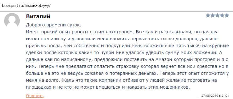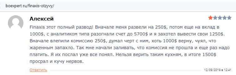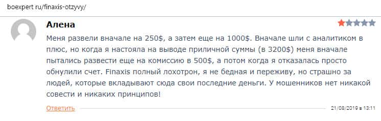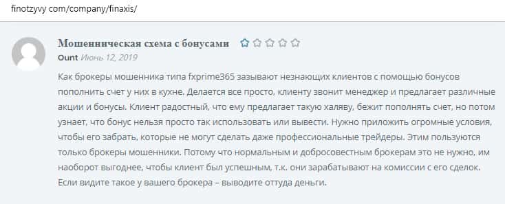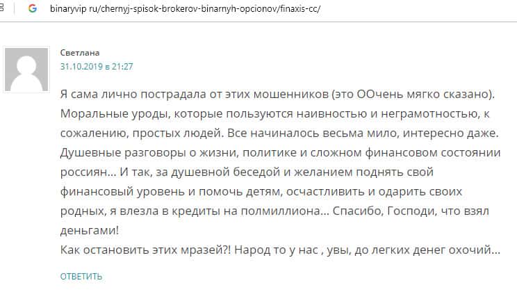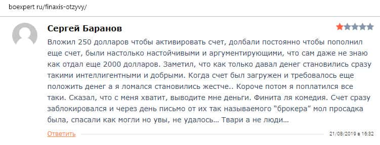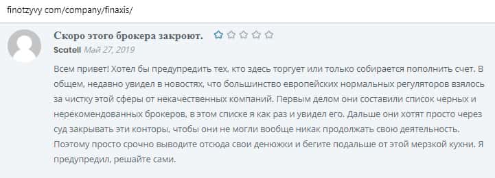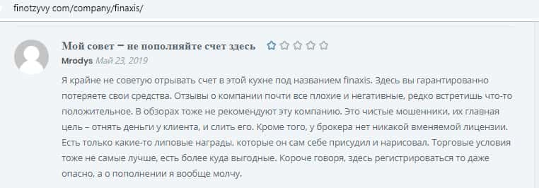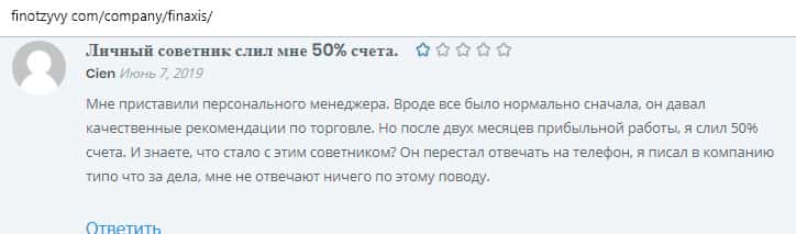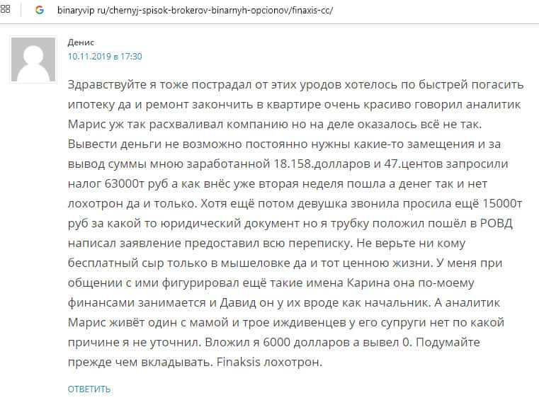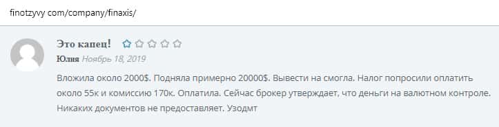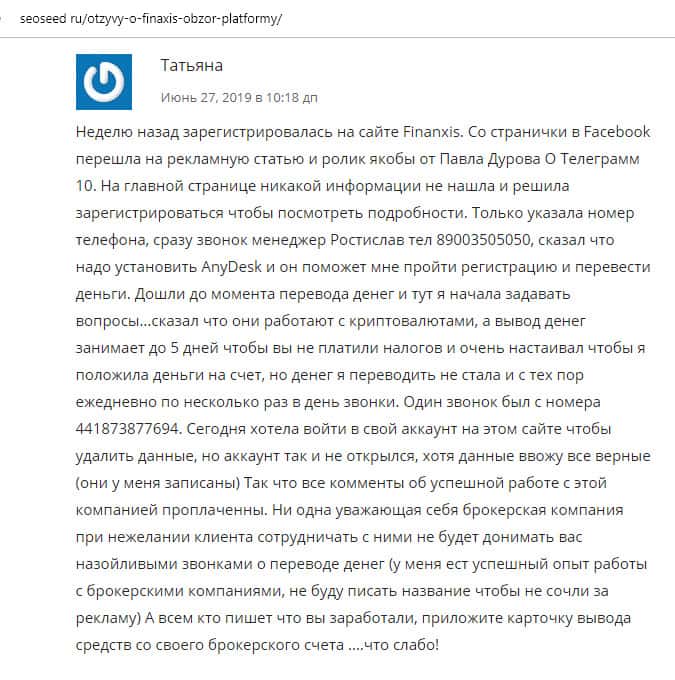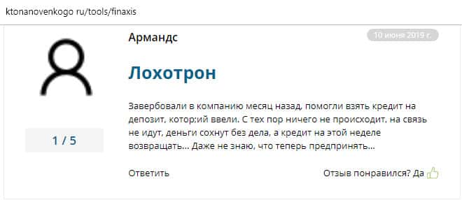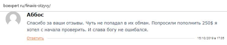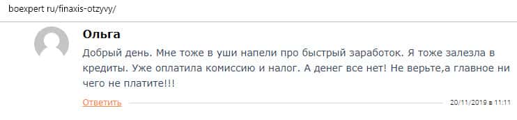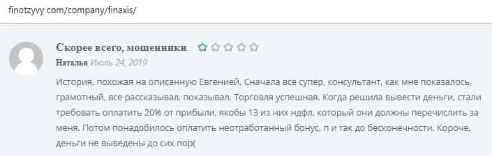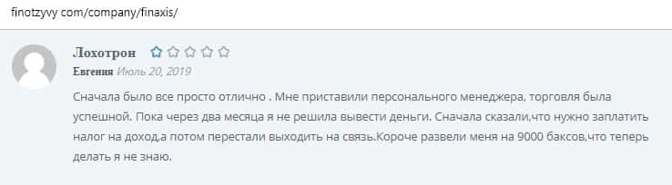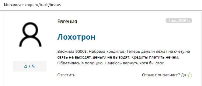 Негативный отзыв в сторону мошеннической конторы Фин Аксис