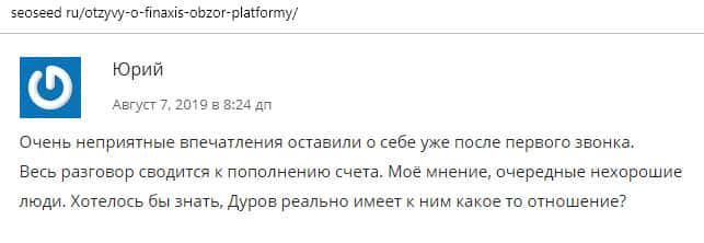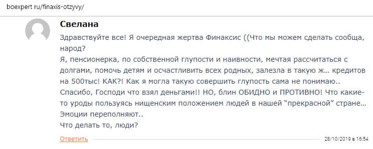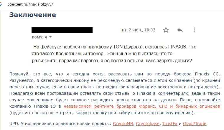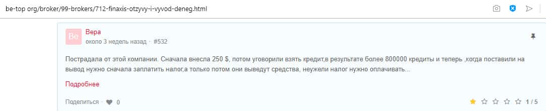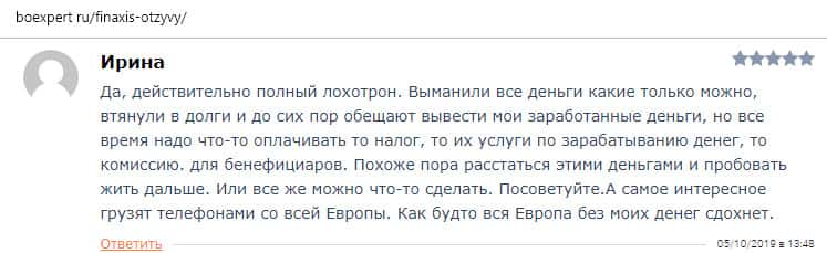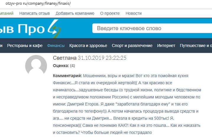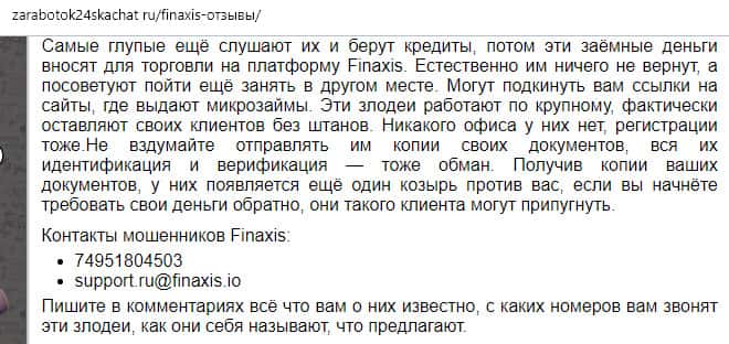- Жалоба на аферистов Финаксис от очередного пользователя всемирной паутины