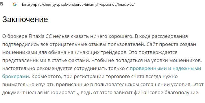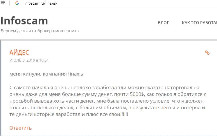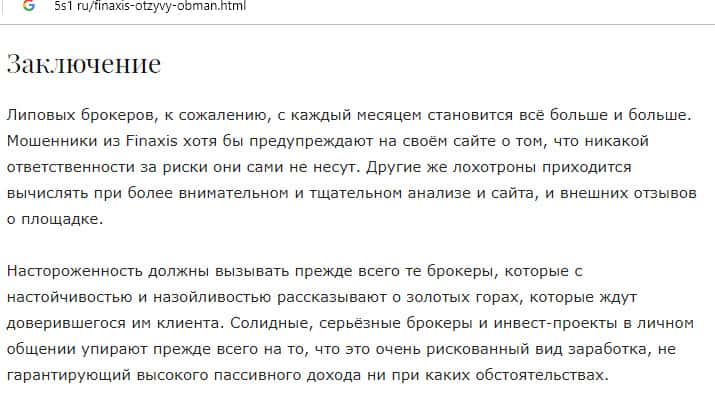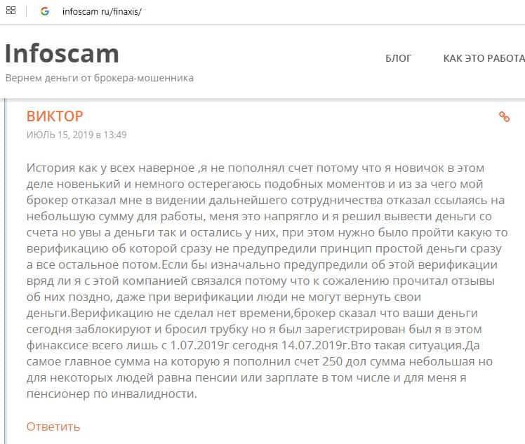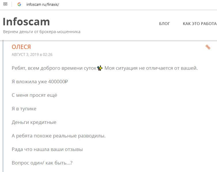 Правдивый отзыв о фейковой конторе Фин Аксис