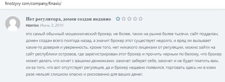 Человек привел свои аргументы не в пользу лохотрона Фин Аксис, потому что сам не понимает, как такая шарага продолжает работать без лицензий и какого либо разрешения от финансовых регуляторов. Все же настораживает, что никто не привлекает их к ответственности, что доказывает множество отзывов о кидалове с их стороны.