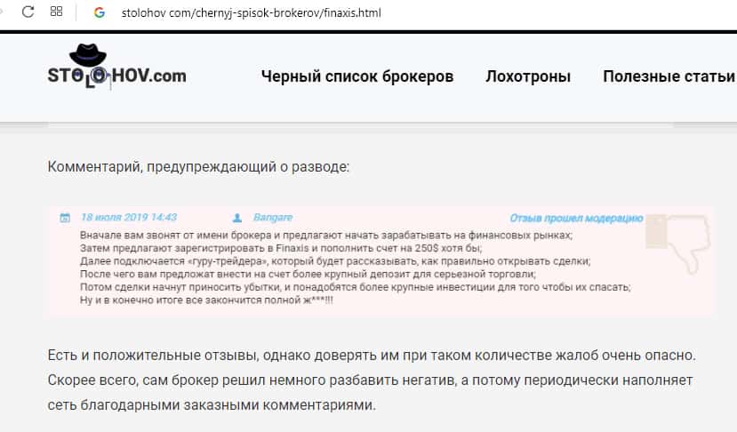 Еще один ресурс против работы с лохотроном Фин Аксис
