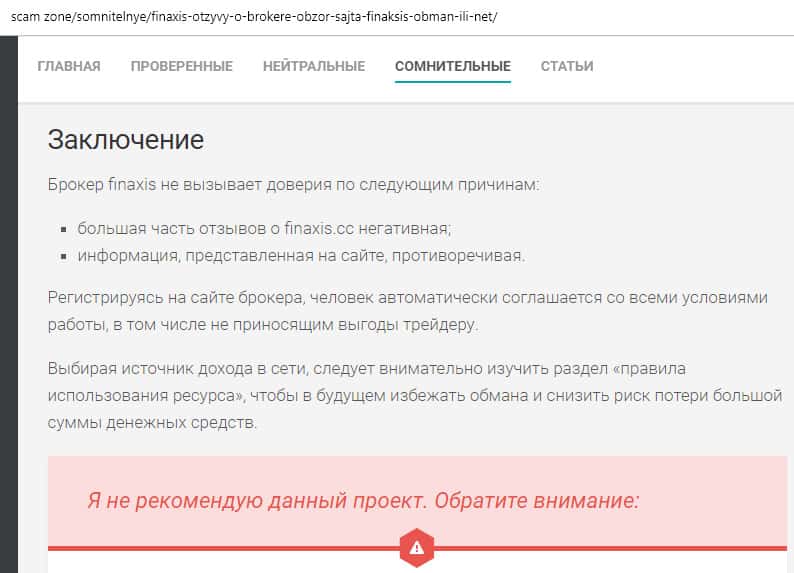 - Еще один ресурс против связи с аферистами Фин Аксис