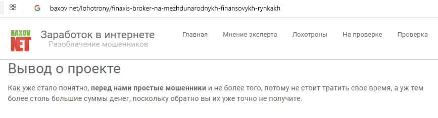 - Веб-портал бахов нет остерегает пользователей сети от кухни FinAxis