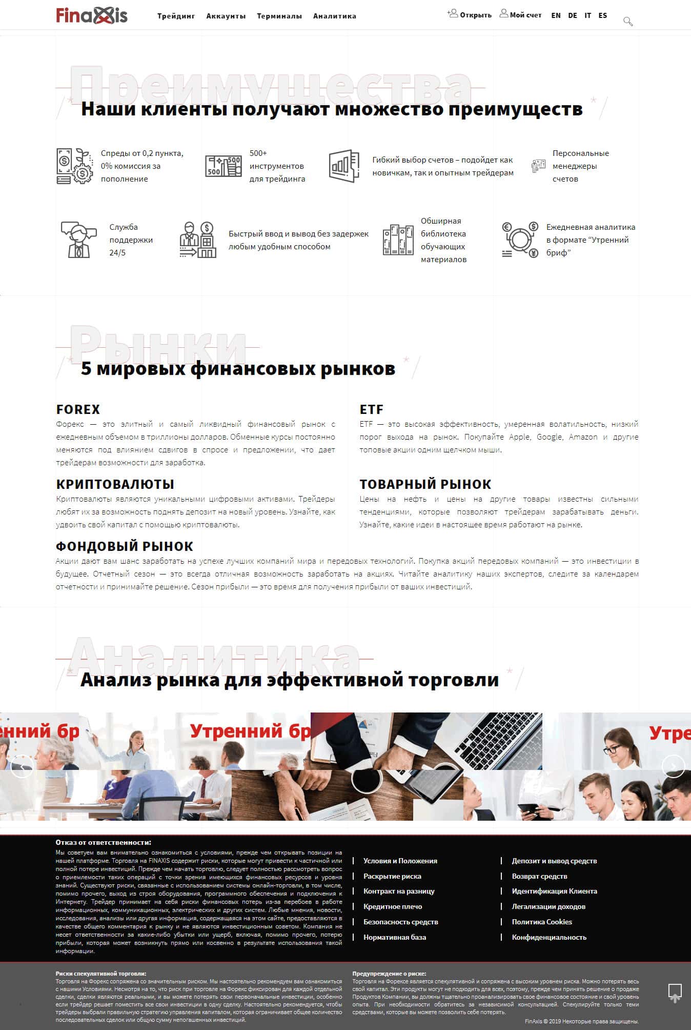 На свой интернет-ресурс, который использует контора Фин Аксис, аферисты потратили наверное мало денег, так как он не доделанный, постоянно глючит, а интерфейс вообще непонятный. Хватает только того, что надписи на картинках и надписи на самом сайте сливаются в словесный каламбур и из-за этого вообще становится все непонятно.