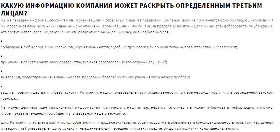 Все что нужно было узнать касательно политики конфиденциальности конторы Фин Аксис, это касается раскрытия информации о клиентах третьим лицам. И как оказалось они могут это сделать без малейшего сопротивления. Поэтому каждый клиент должен понимать, что передав свои данные этим мошенников, будут находиться в опасности.