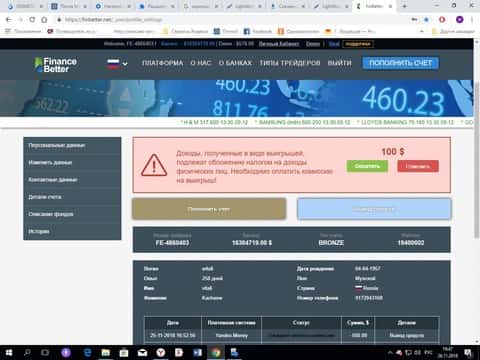 Не наступайте на те же грабли, что и несчастный, кинутый мошенниками, вкладчик, написавший этот отзыв. Ведь этот якобы «налог» просто осядет на оффшорном счету конторы Фин Беттер.