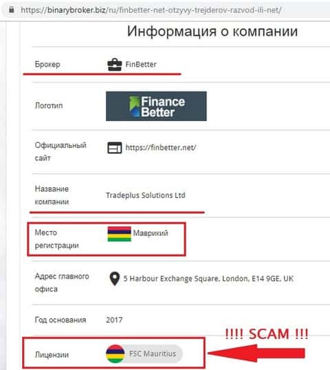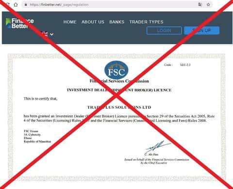 На каких же простачков рассчитан лохотрон FinBetter, если все сведения об этой шарашкиной конторе – ложь, и предоставлены исключительно для того, чтобы запутать пользователя. Возьмем организацию, регулирующую деятельность этого брокера, название которого на самом деле Tradeplus Solutions Ltd. В качестве регулятора конторы указана независимая, и в общем-то, не вызывающая сомнений, компания – FSC или Financial Services Commission Mauritius.