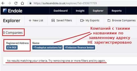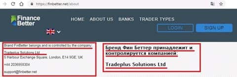 С руководством Фин Беттер выходит и вовсе интересная картина. На веб-портале мошенников заявлено, что бренд FinBetter принадлежит и контролируется компанией Tradeplus Solutions Ltd, расположенной по вполне конкретному адресу в Лондоне.