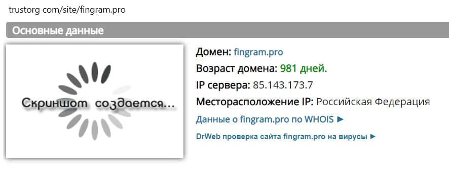 Доменное имя мошеннического сайта "fingram.pro" пользователи вбивали в поисковую систему Гугл слишком редко, поэтому данных по этому запросу очень мало.