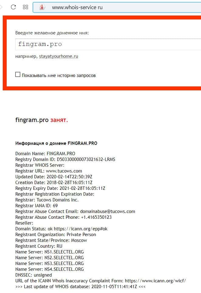 Кому принадлежит доменное имя сайта Fingram Pro?