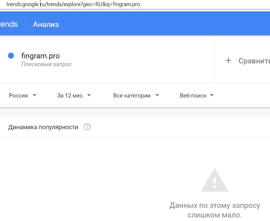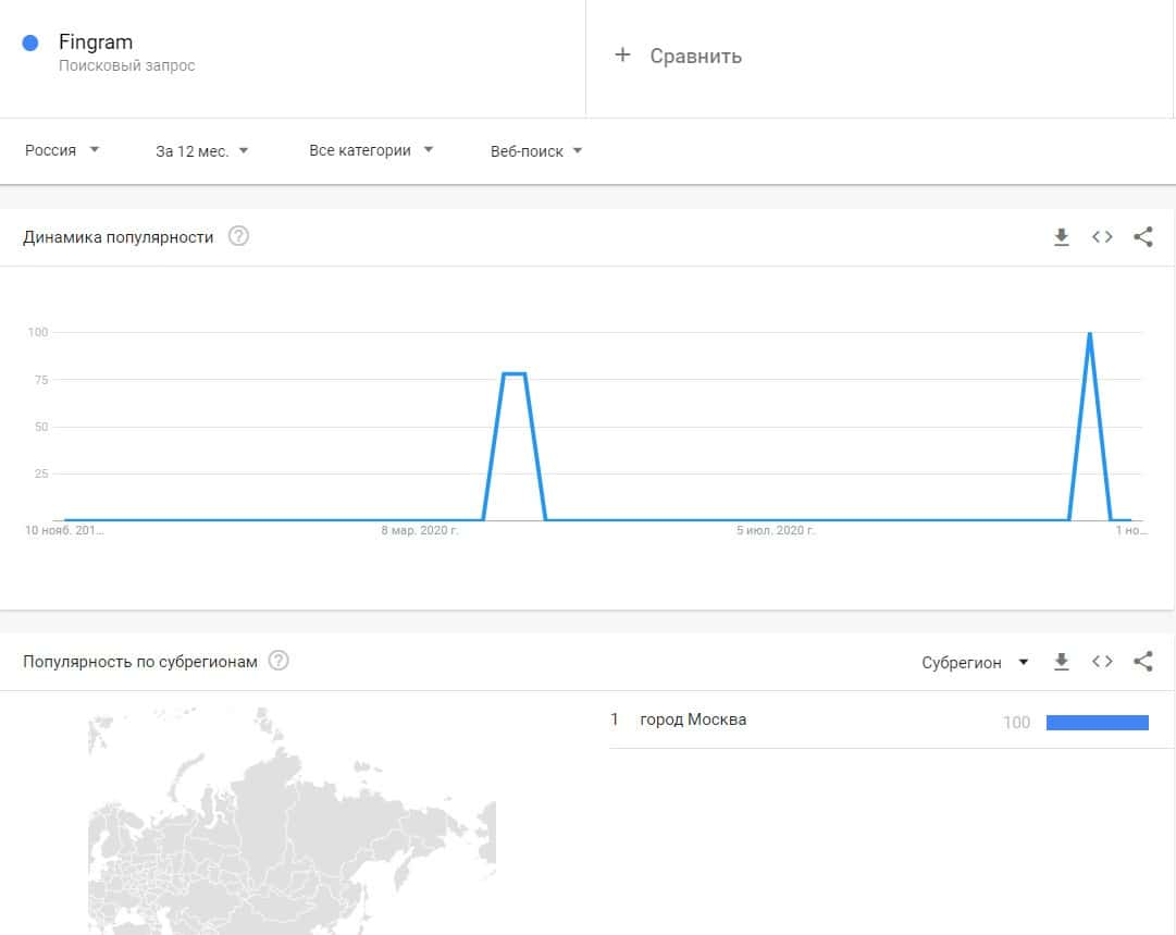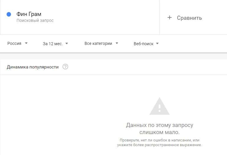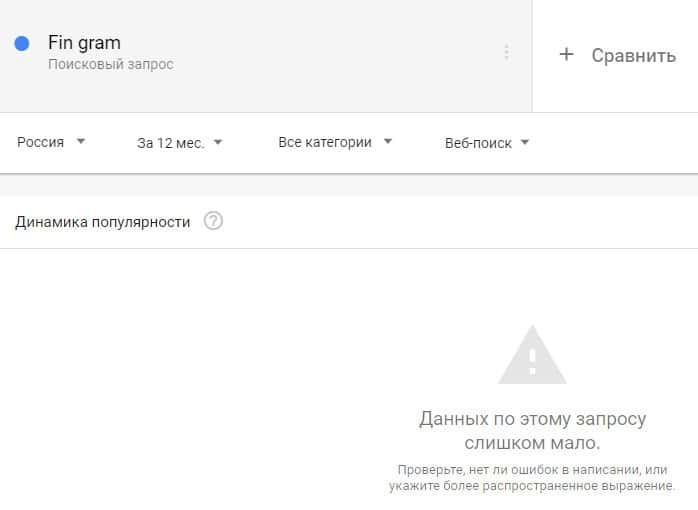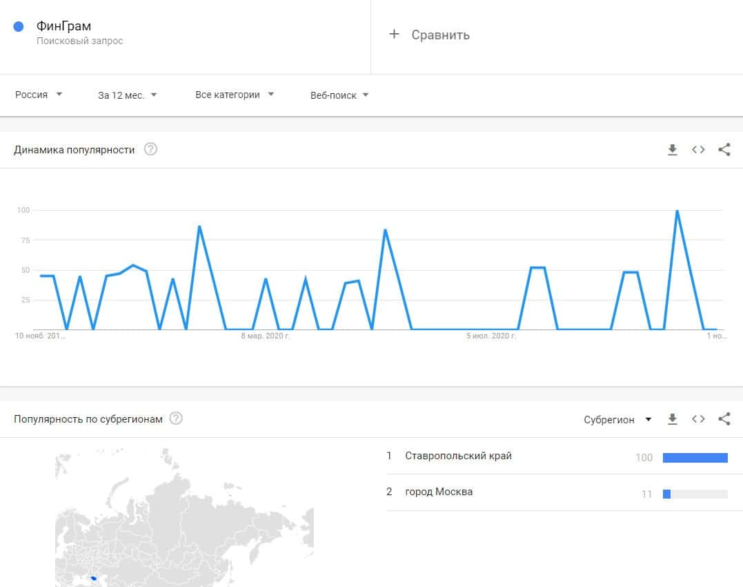 То же название, но написанное с пробелом на русском языке "Фин Грам", люди не пытались найти в системе Гугл Тренд.