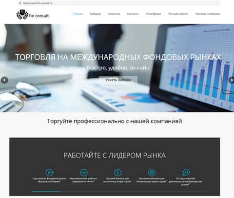 Зайдя на сайт Fin Consult, в глаза бросается как быстро и удобно жулье поторгует за вас на международных фондовых рынках. Якобы они и профессионалы, и лидеры, и лучшие инвесторы среди всех. Целых 10 лет, как утверждают мошенники, на брокерском рынке.