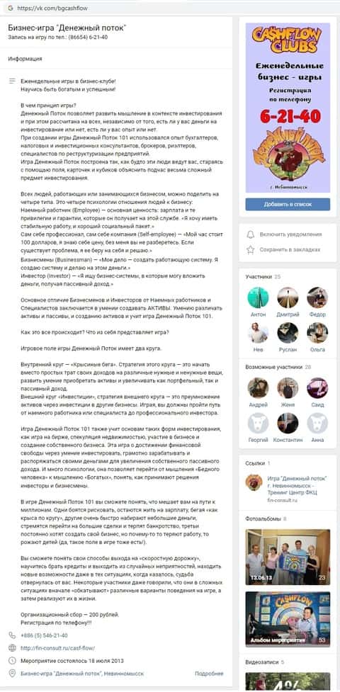 Самое ужасное, что шарашка Fin Consult имеется в сети под самыми разными наименованиями. В популярнейшей в РФ сети vk com скаммеры зарегистрированы даже не как брокеры, а как бизнес-клуб, собирающий лошков поиграть в Денежный поток в г. Невинномысске с тем, чтобы выудить у них реальных деньжат.