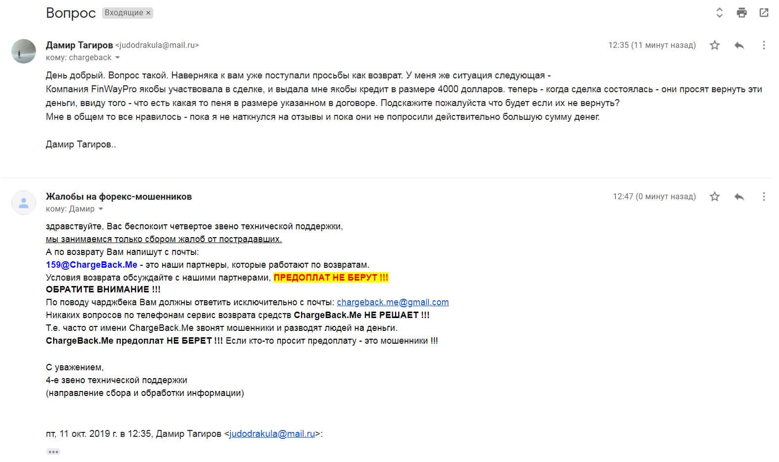 - Жалоба на контору аферистов Finwaypro - на клиента вешают долги